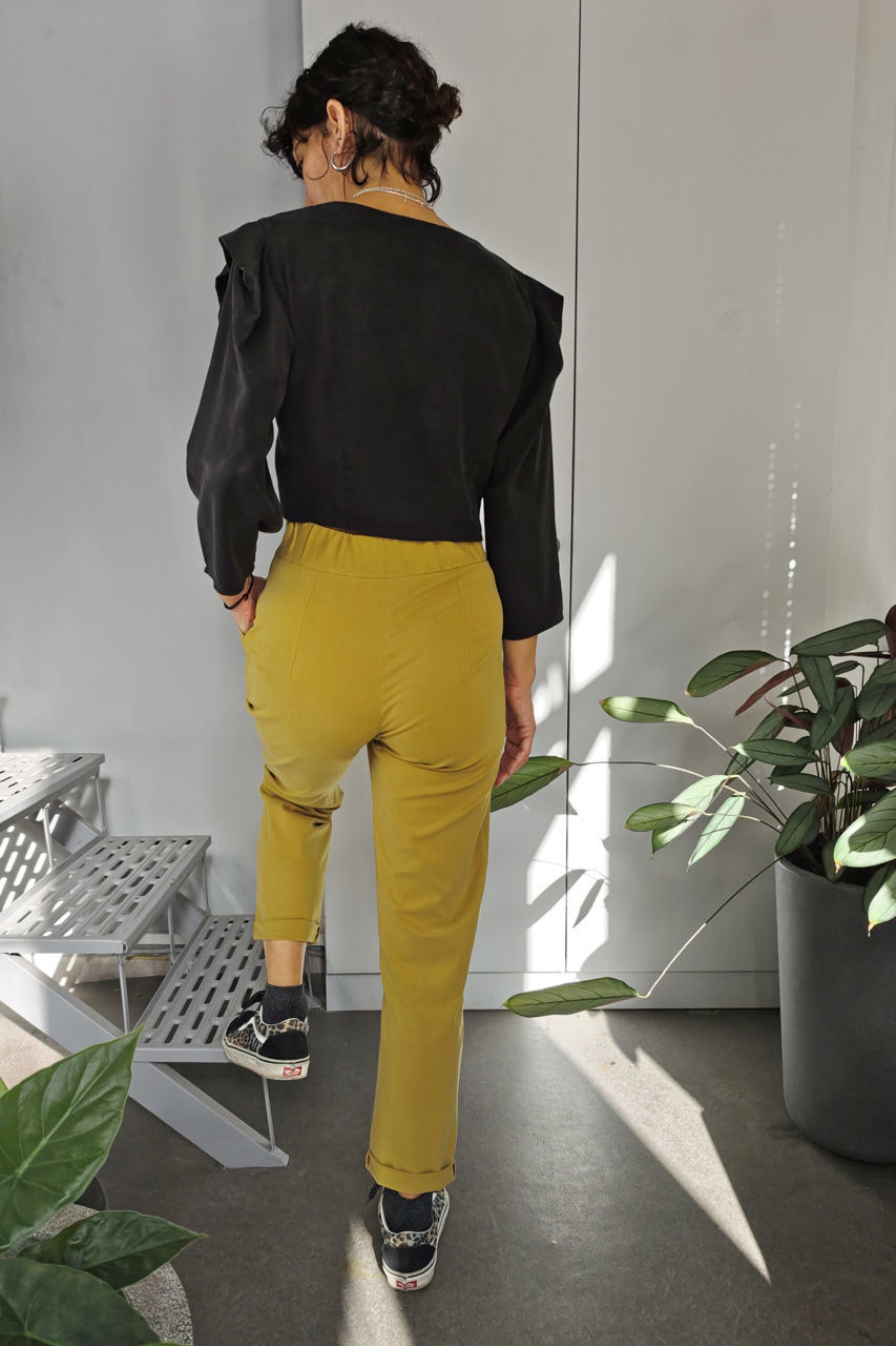 pleated pocket pants in lime